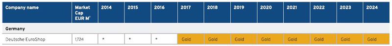 The EPRA Sustainability Best Practices Recommendations (sBPR) are intended to raise the standards and consistency of sustainability reporting for listed real estate companies across Europe. As with the EPRA financial BPR Awards, each year EPRA recognises companies which have issued the best-in-class annual sustainability performance report. In addition to the environmental impact of its property portfolio and own administrative office, Deutsche EuroShop's ESG Report also covers social and governance performance indicators.