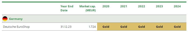 Deutsche EuroShop has been recognised with this year's “EPRA Sustainability Best Practices Recommendations (sBPR) Gold Award” and “EPRA Best Practices Recommendations (BPR) Gold Award” in the context of the annual EPRA conference in Berlin. In both categories it is the eigth Gold Award in a row since 2017.